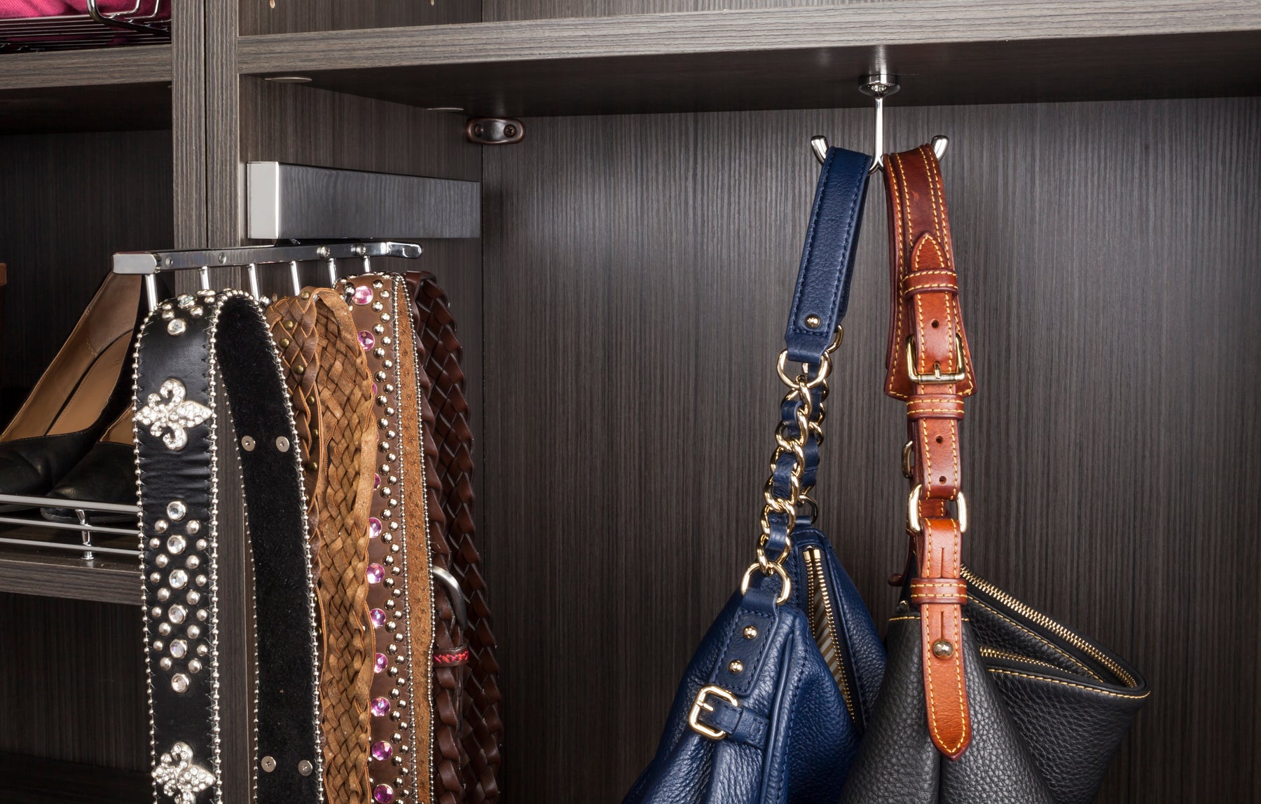 12" Sliding Belt Rack is the perfect accessory for adding convenience to the closet. Six hooks can hold multiple belts or other hanging items. Sliding rack is on ball bearing slides and is a universal design so can be mounted left or right-handed. Brushed Oil Rubbed Bronze finish. To view available specifications and installation instructions select all product options.