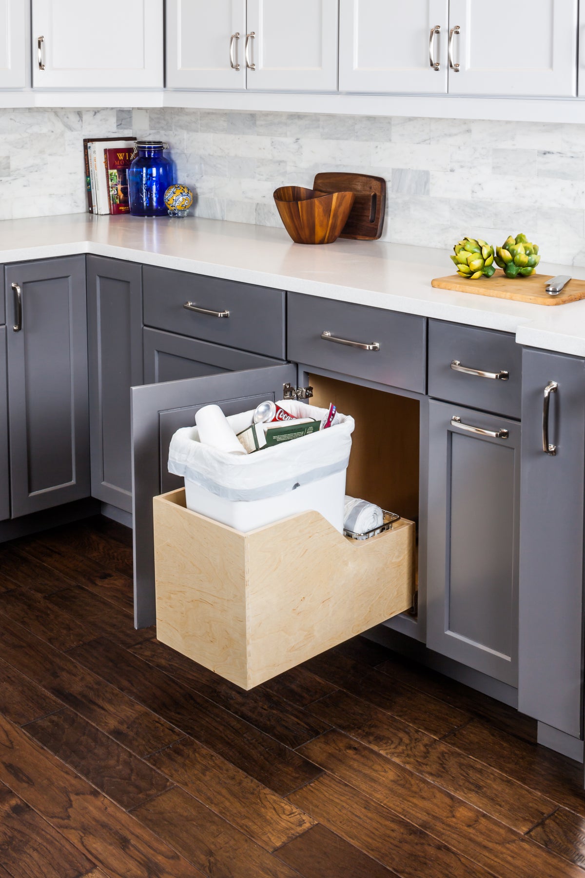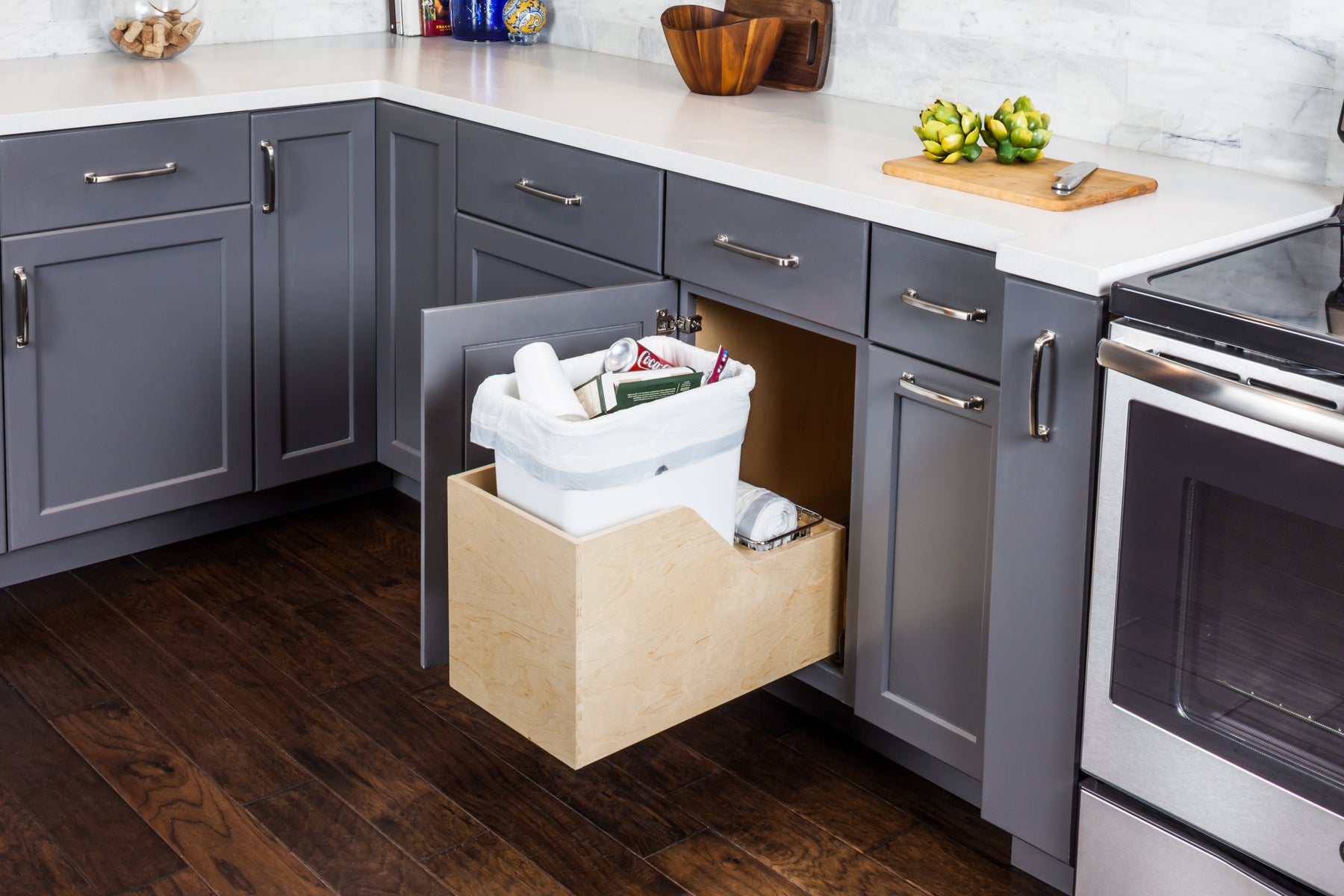 Neatly tuck away trash cans with this beautiful solid wood soft-close trashcan rollout for a hinged door application. Ships fully preassembled with one 35 qt white plastic trash bin. Simply take out of box and screw to bottom of cabinet floor with four screws. Designed for cabinets with a 12" opening width. To view available specifications and installation instructions select all product options.