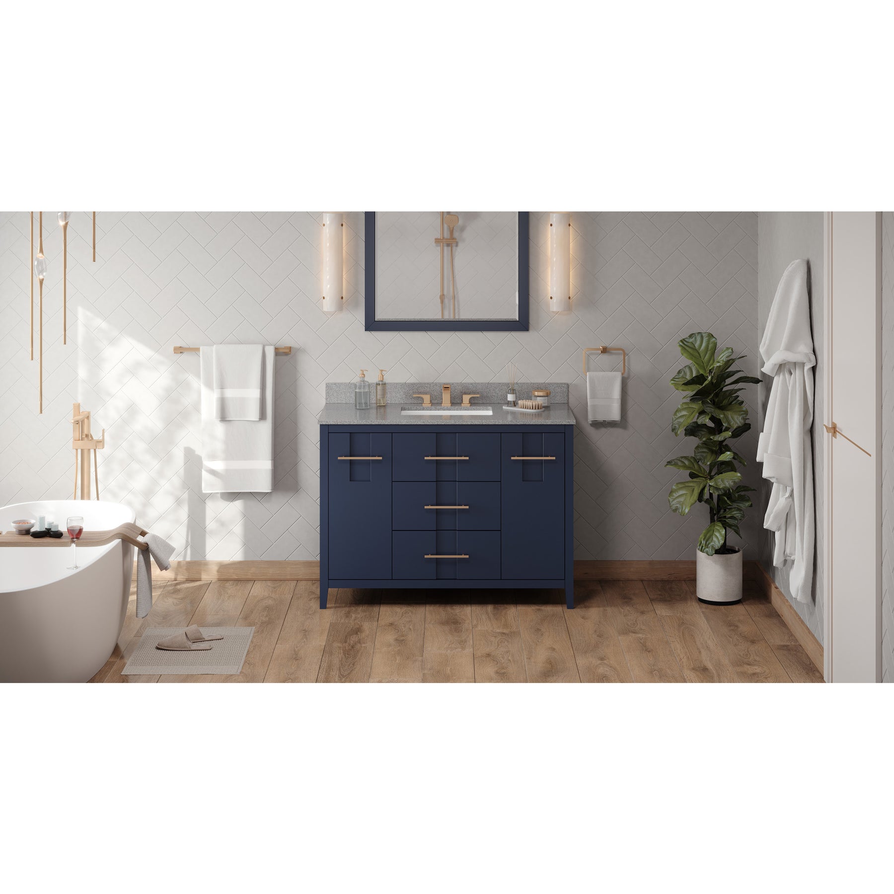 48" Hale Blue Katara Vanity, Steel Grey Cultured Marble Vanity Top, undermount rectangle bowl