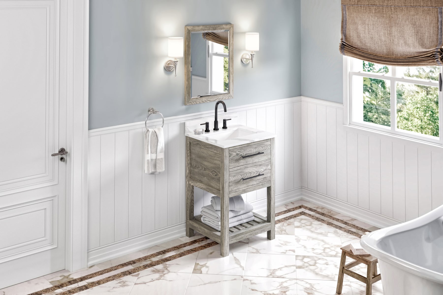 24" Weathered Grey Wavecrest Vanity, Calacatta Vienna Quartz Vanity Top, undermount rectangle bowl | KitchBath