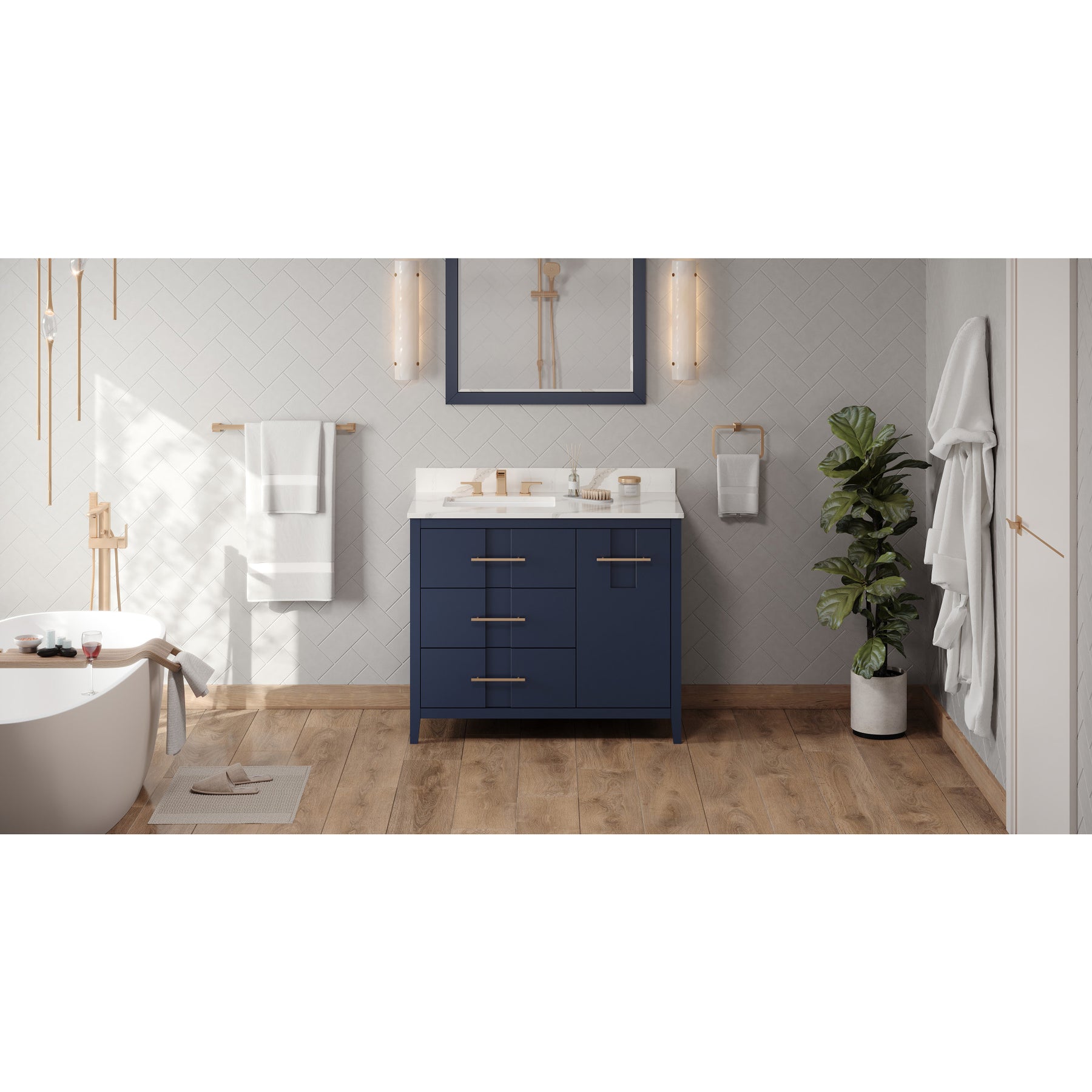 42" Hale Blue Katara Vanity, left offset, Calacatta Vienna Quartz Vanity Top, undermount rectangle bowl | KitchBath