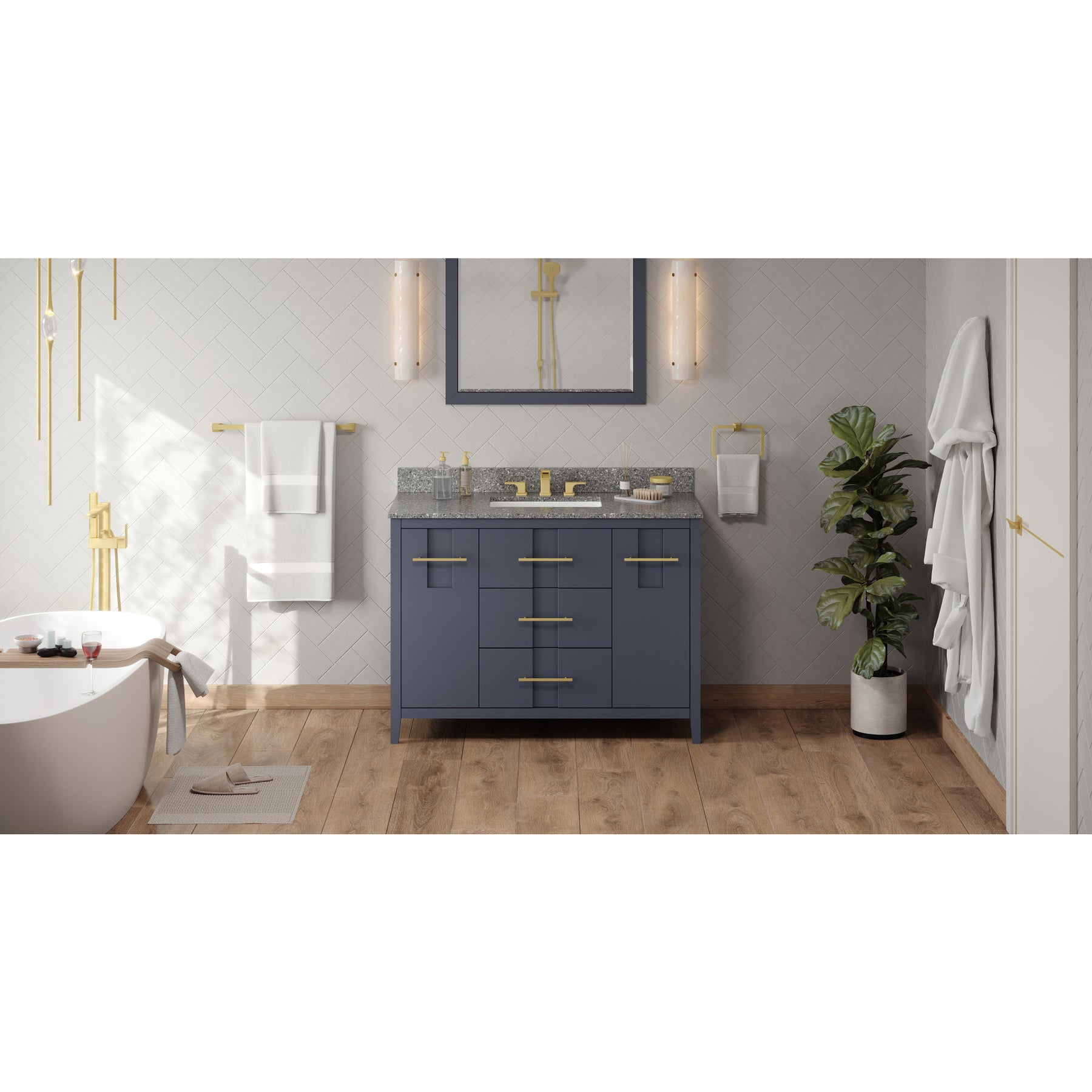48" Blue Steel Katara Vanity, Boulder Cultured Marble Vanity Top, undermount rectangle bowl | KitchBath