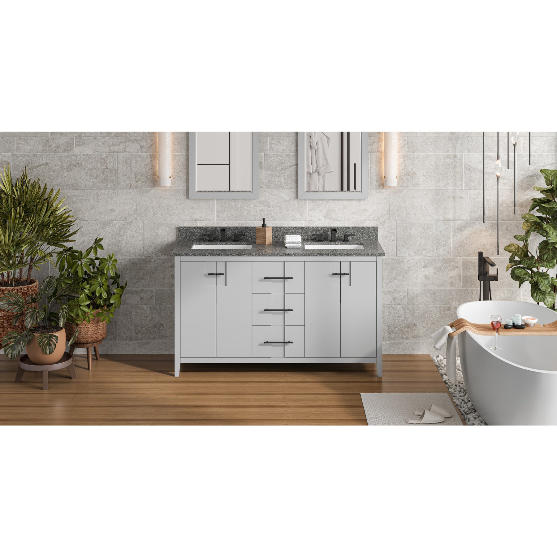 60" Grey Katara Vanity, double bowl, Boulder Cultured Marble Vanity Top, two undermount rectangle bowls