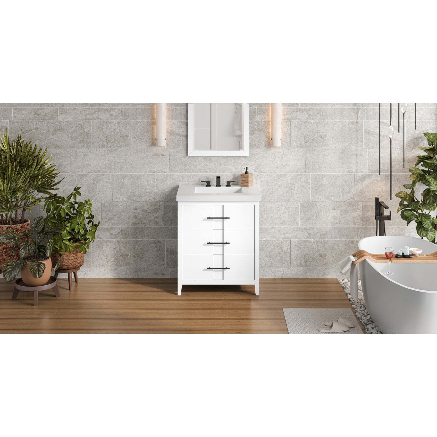 Katara 30" Single Bathroom Vanity Set White, White Resin Vanity Top, Rectangle Bowl | KitchBath