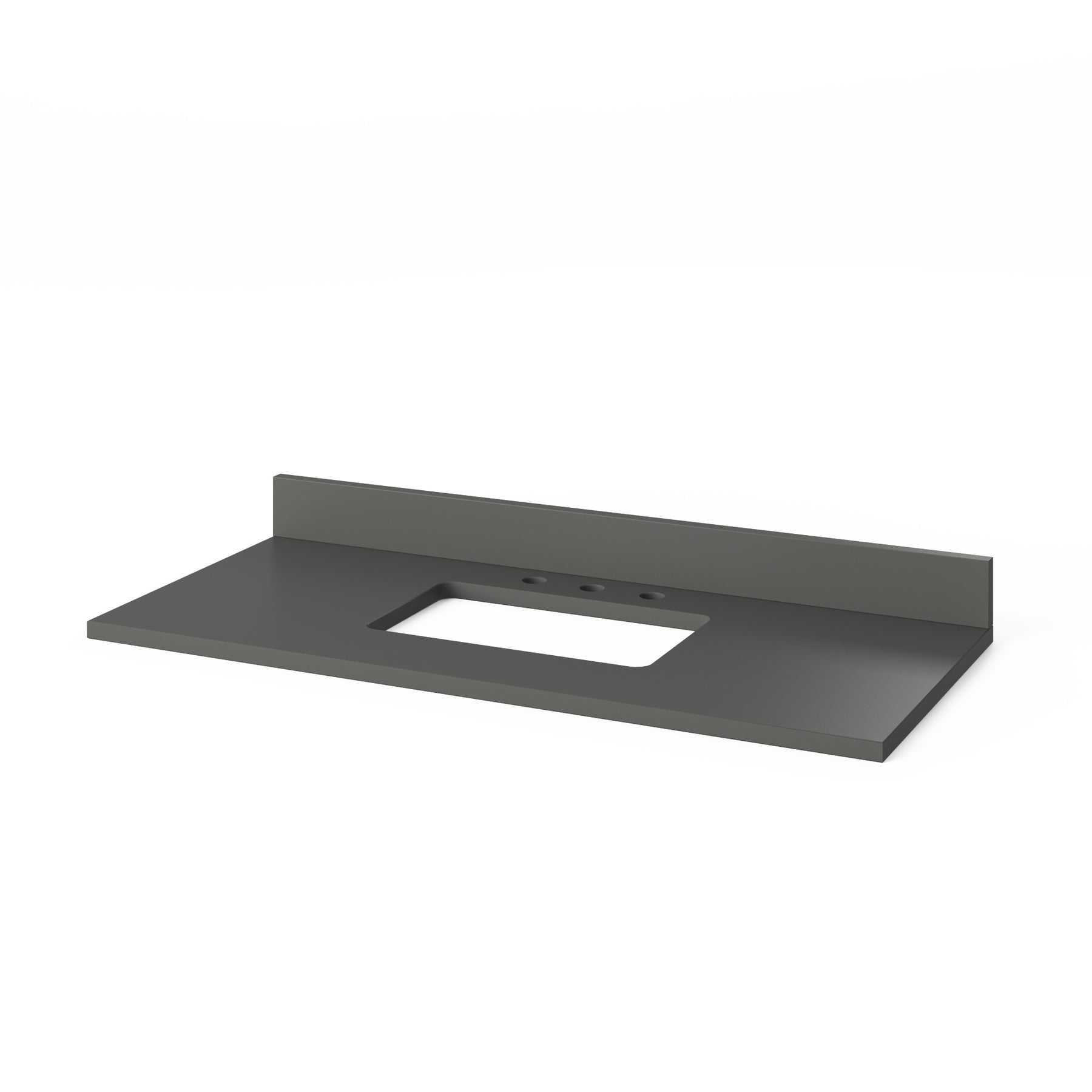 • Included top has three holes cut for an 8” widespread faucet and a 4” backsplash