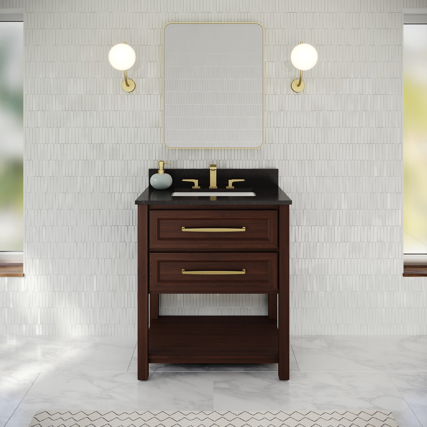 Kipling 30" W Single Basin Bathroom Vanity Set Dark Walnut, Black Granite Vanity Top, Rectangle Bowl