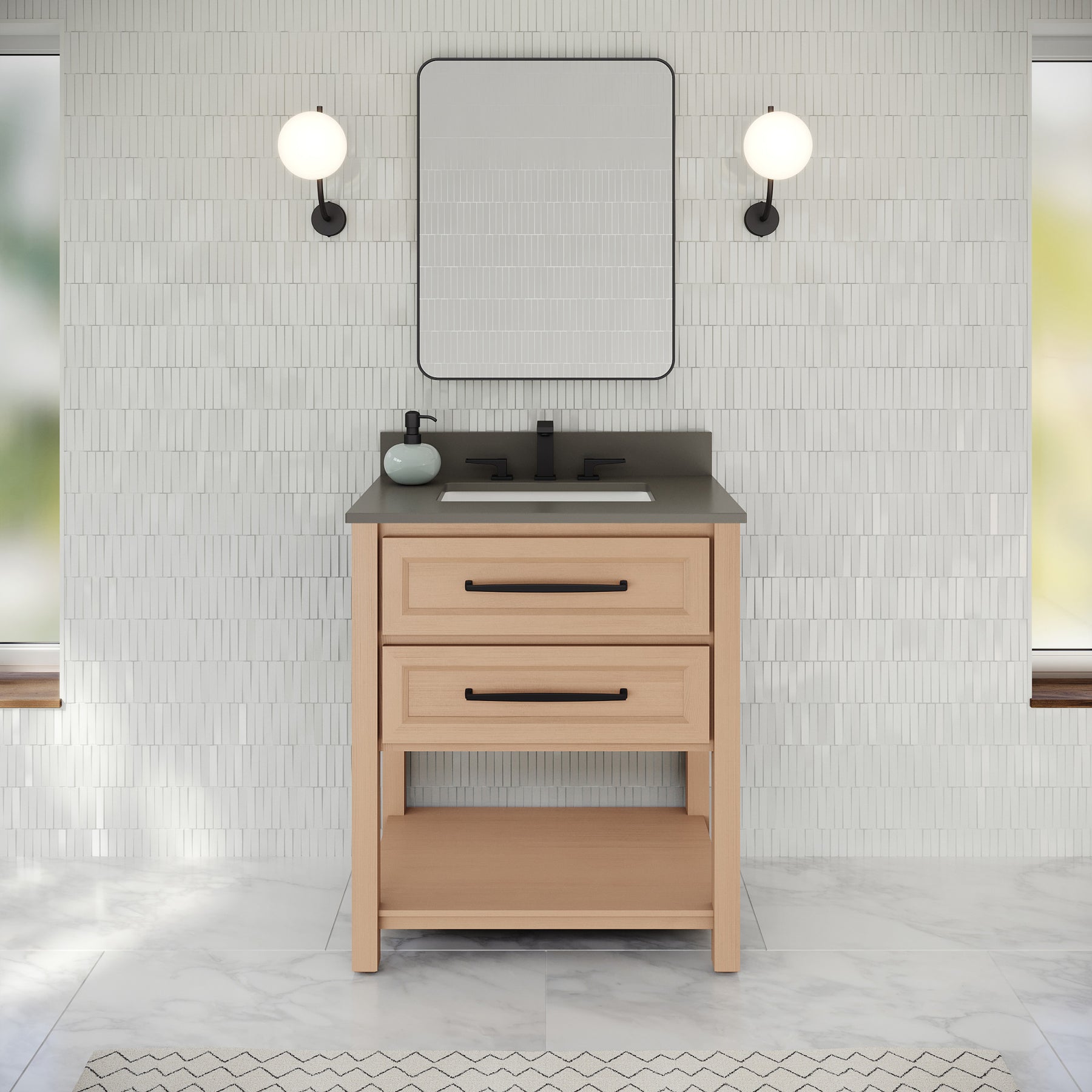 Kipling 30" W Single Basin Bathroom Vanity Set Natural Oak, Grey Quartz Vanity Top, Rectangle Bowl