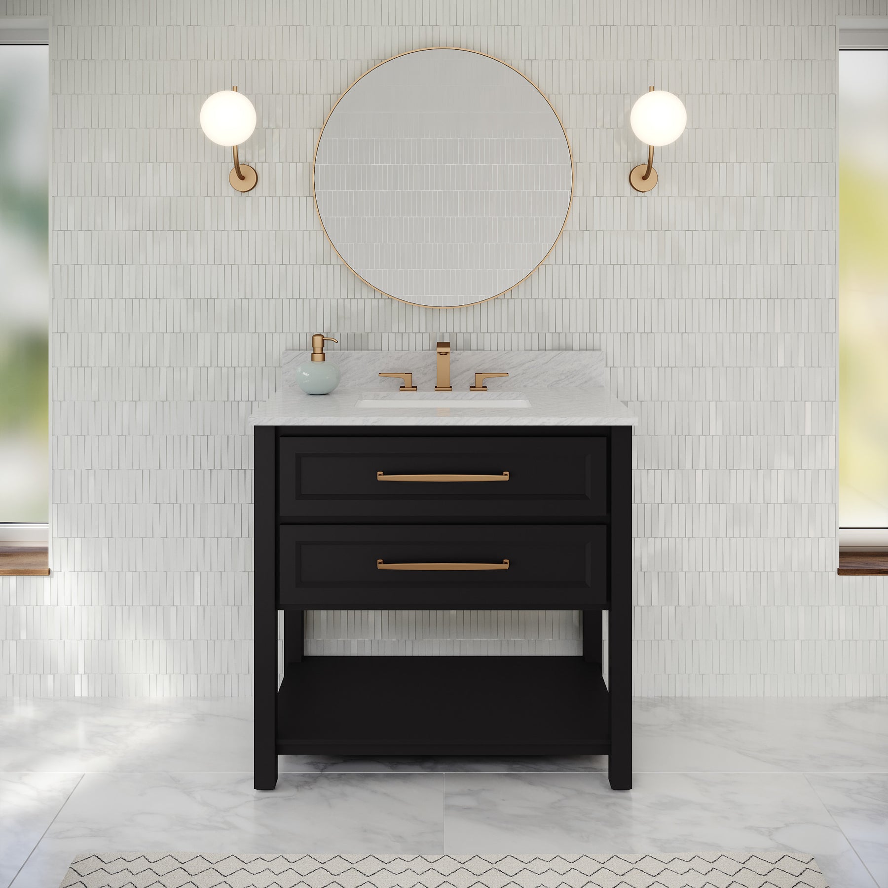 Kipling 36" W Single Basin Bathroom Vanity Set Black, White Carrara Marble Vanity Top, Rectangle Bowl