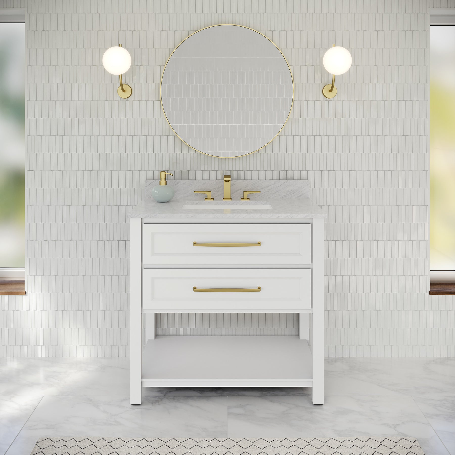 Kipling 36" W Single Basin Bathroom Vanity Set White, White Carrara Marble Vanity Top, Rectangle Bowl