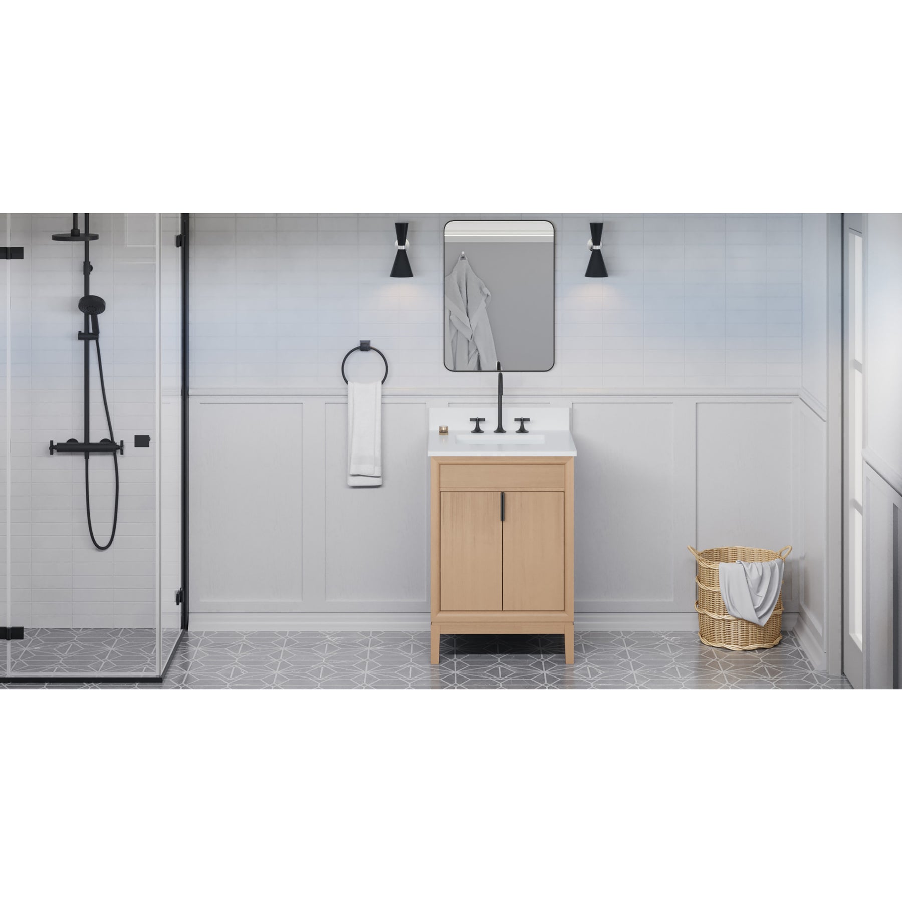 Theodora 24" Single Bathroom Vanity Set Natural Oak, White Quartz Vanity Top, Rectangle Bowl | KitchBath
