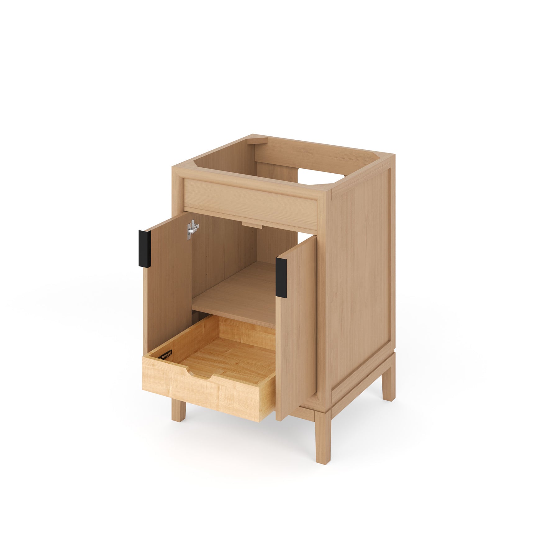 • Dovetail rollout drawer beneath the adjustable shelf in the cabinet