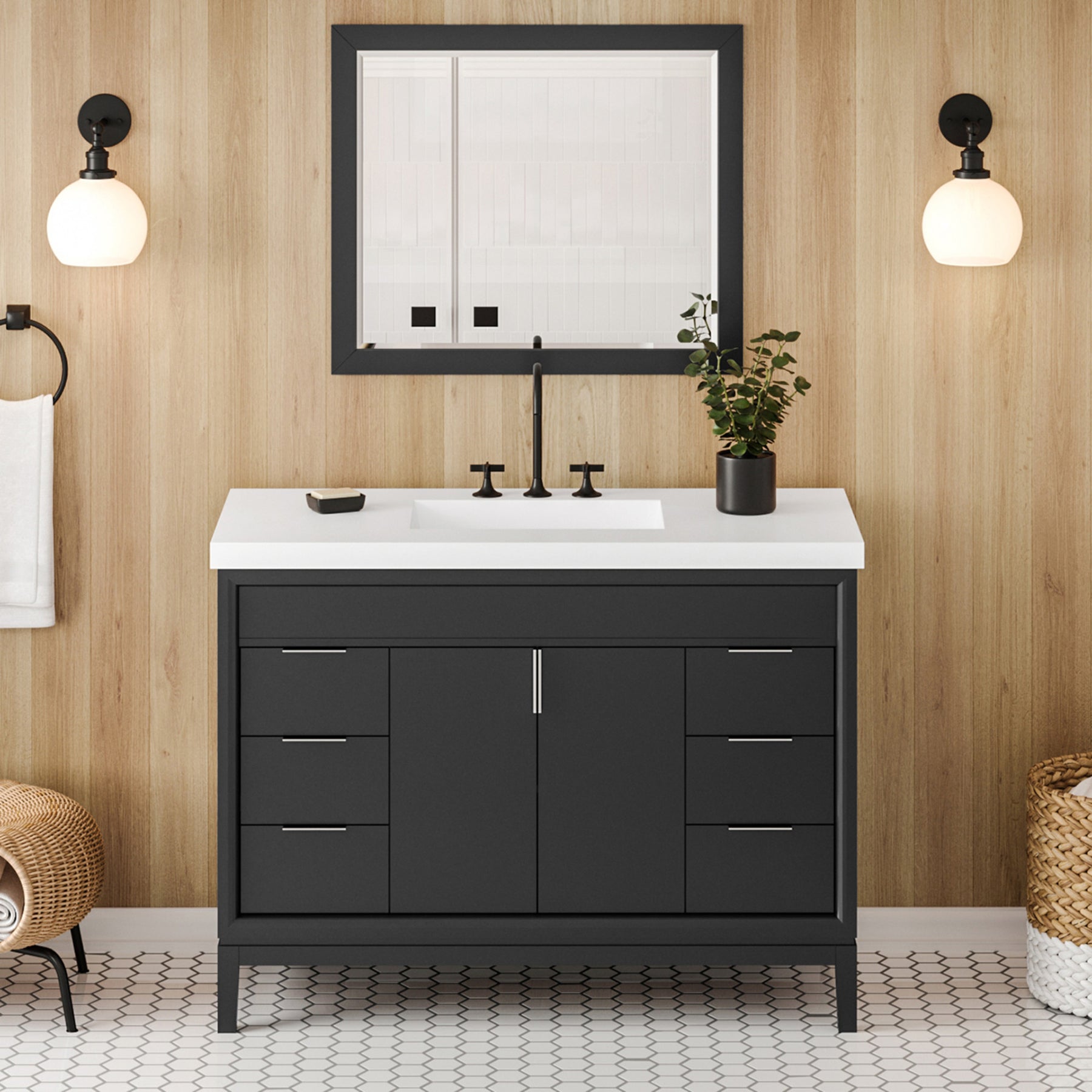 Theodora 48" Single Bathroom Vanity Set Black, White Resin Vanity Top, Rectangle Bowl | KitchBath