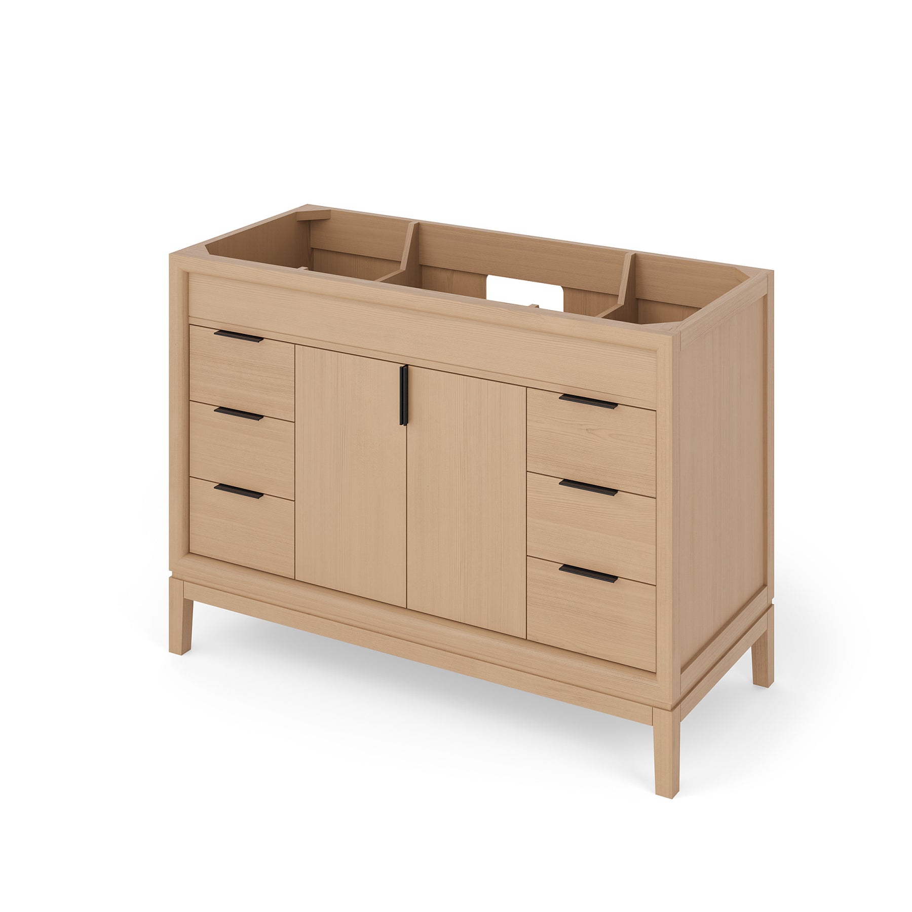 Theodora 48" Single Bathroom Vanity Set Natural Oak, Calacatta Vienna Quartz Vanity Top, Rectangle Bowl | KitchBath