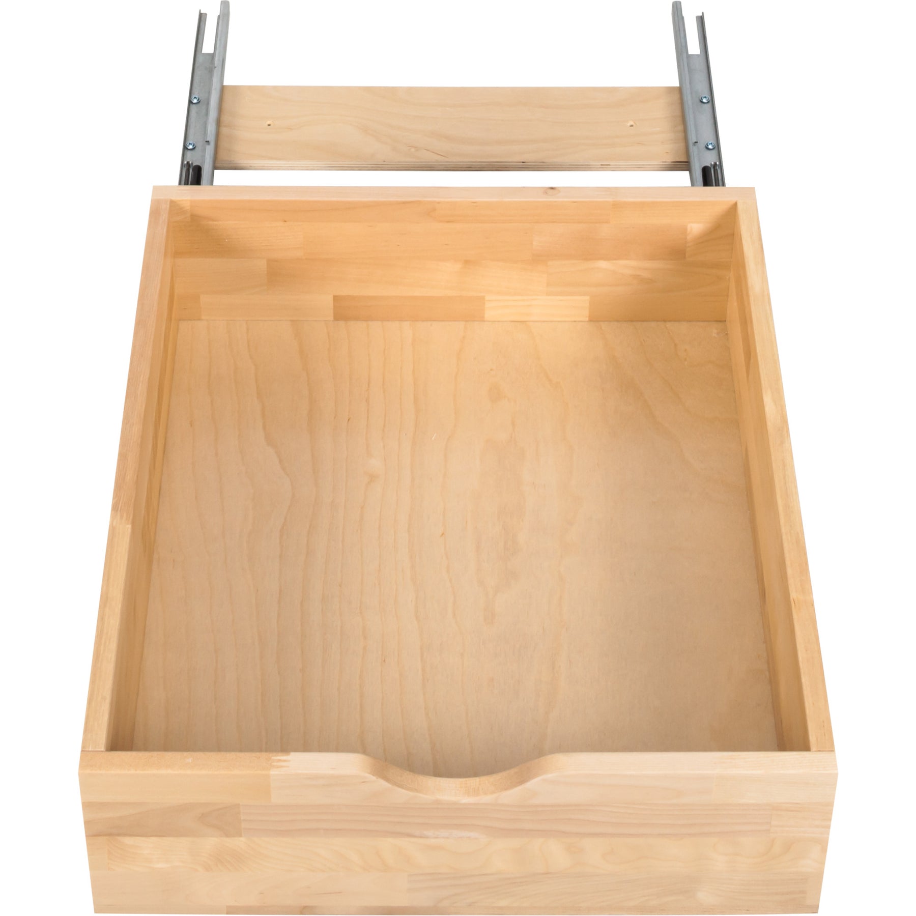 Add the convenience of a drawer to any cabinet with our easy-to-install stock rollouts. Beautiful solid wood birch rollouts are premeasured to fit standard cabinet openings. Ships with Soft-close slides already attached. Simply attach to cabinet bottom or fixed shelf with the provided four installation screws. Designed for a 21" cabinet opening.