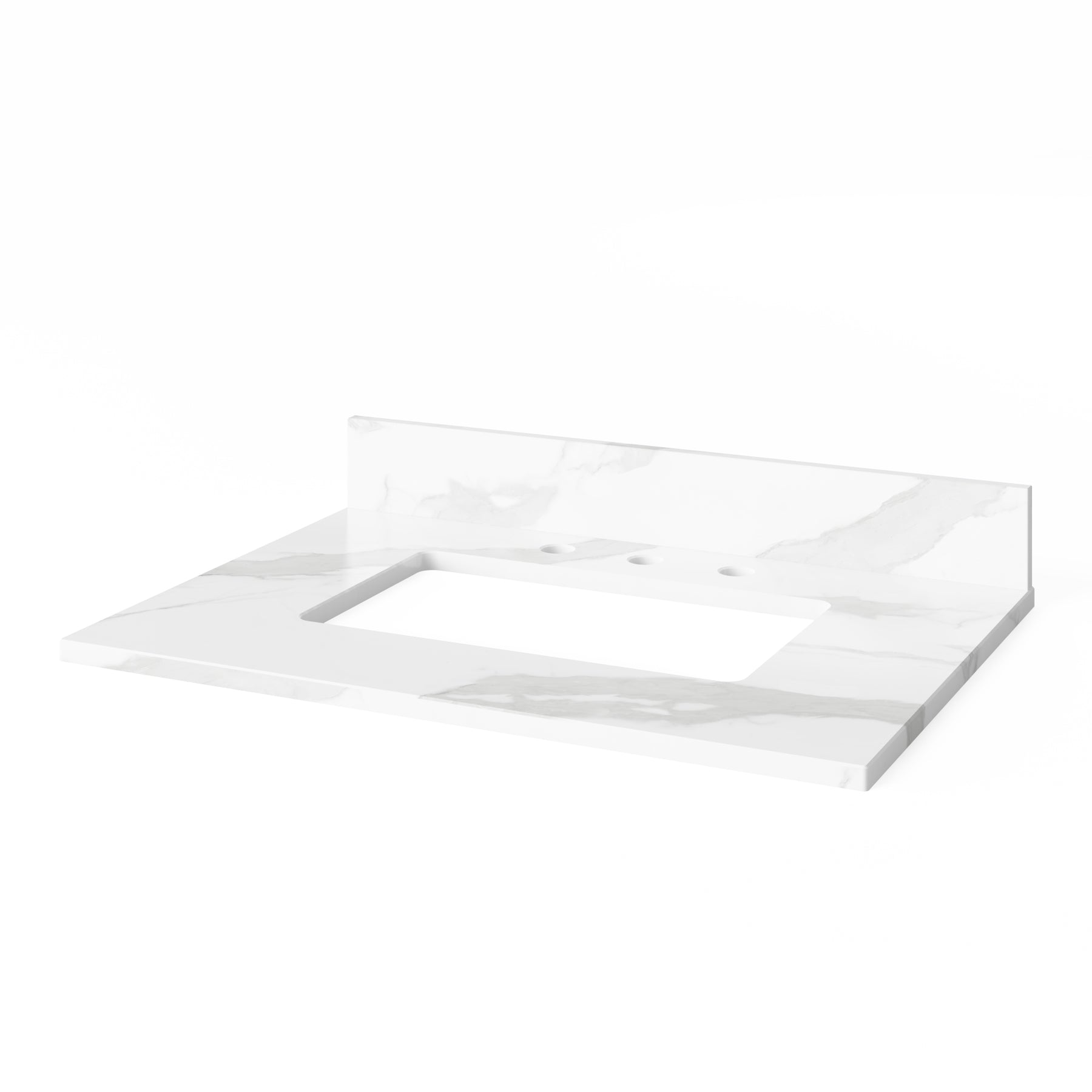 • Included top has three holes cut for an 8” widespread faucet and a 4” backsplash