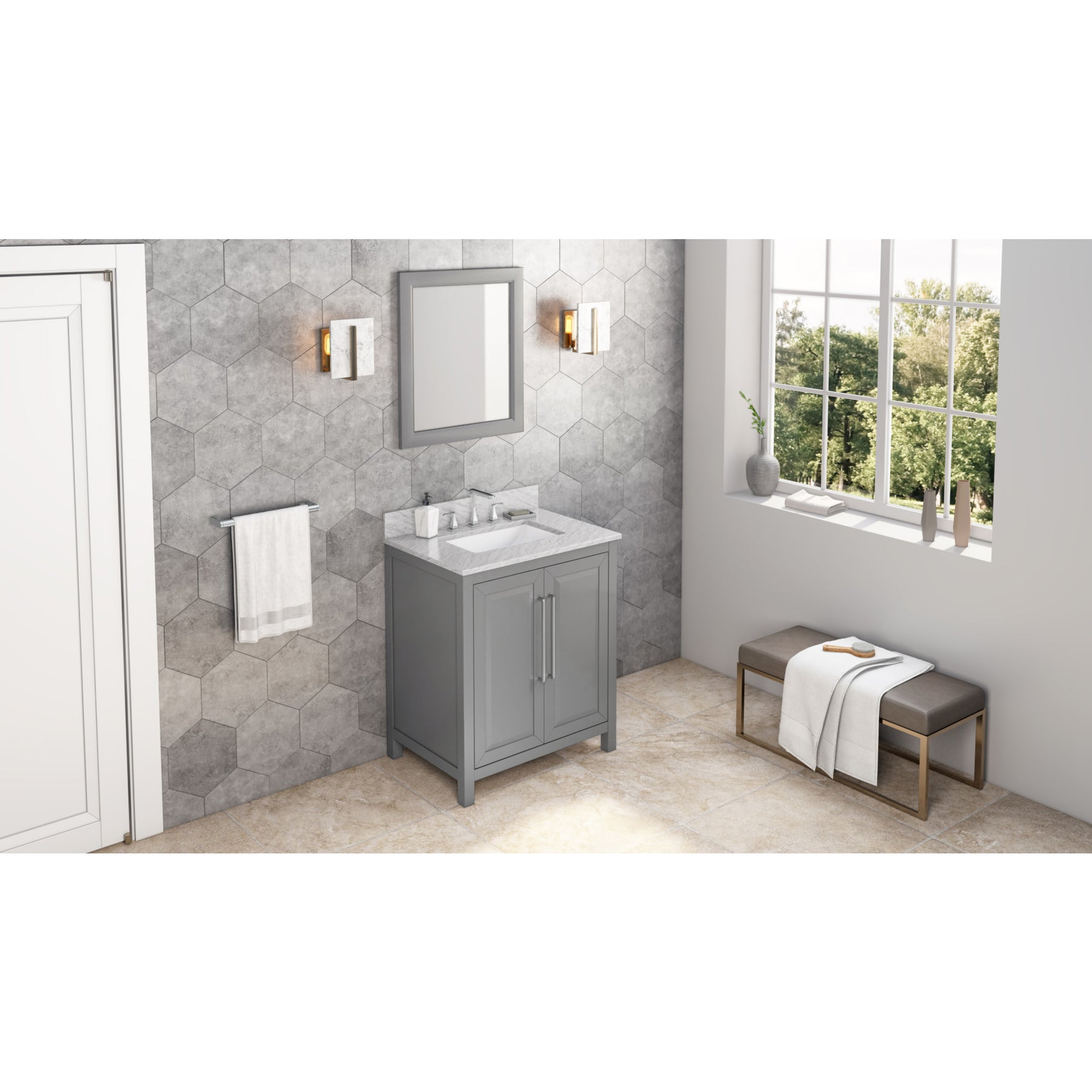 30" Grey Cade Vanity, White Carrara Marble Vanity Top, undermount rectangle bowl